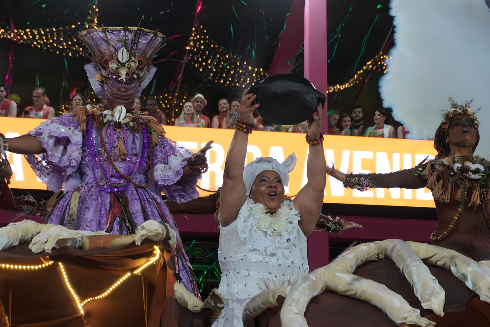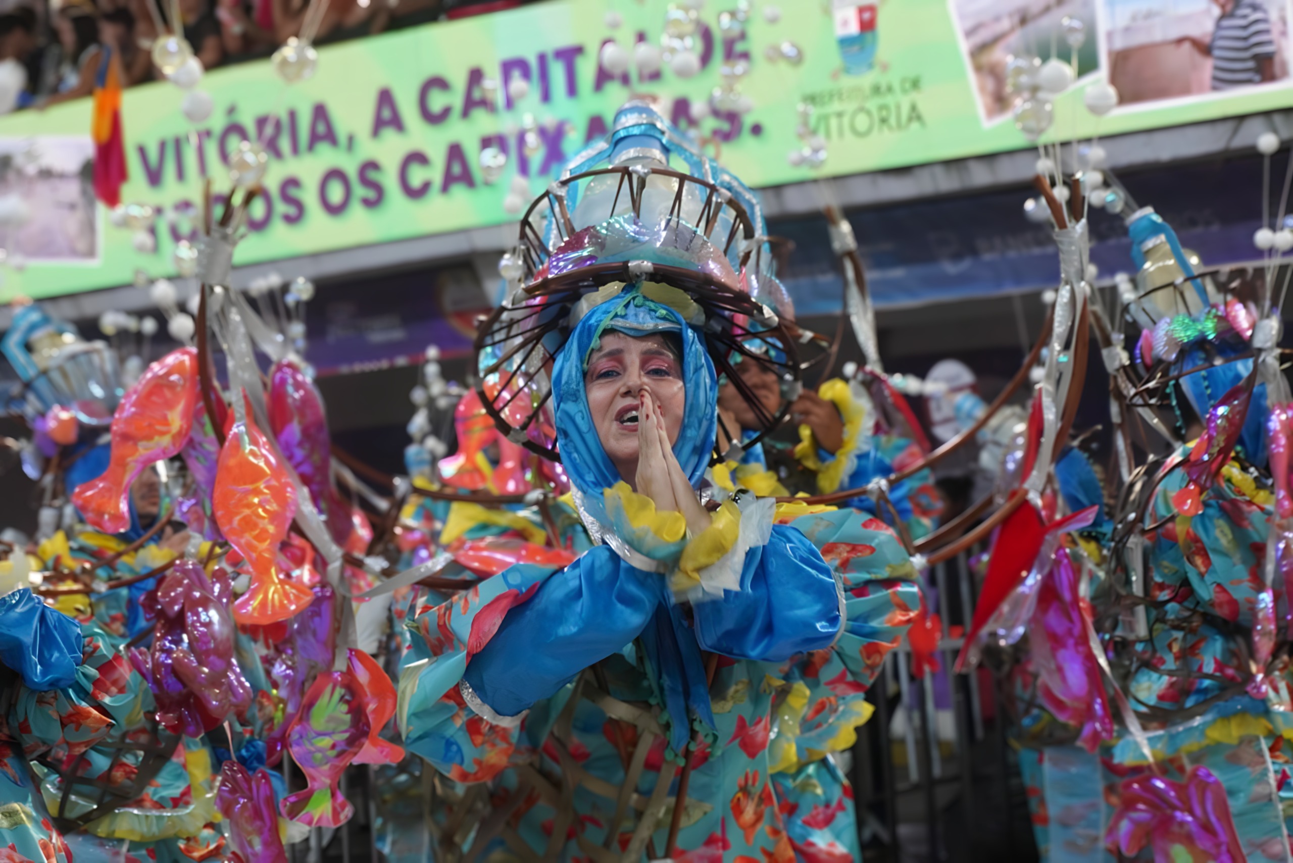 O desfile trouxe um show de cores e elementos simbólicos. As cores quentes dominaram a avenida, representando a culinária capixaba, enquanto o marrom da lama e o preto da panela de barro deram um toque especial, remetendo diretamente ao famoso artesanato local. Ritmos tradicionais, como o congo e a presença marcante do Boi Estrela, que foi representado em um grande carro alegórico, ajudaram a contar essa história.